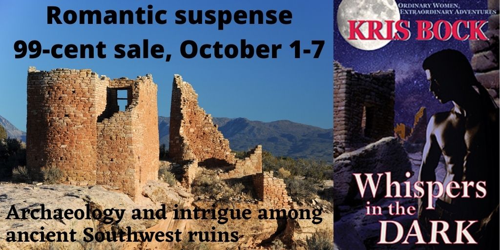 #99c SALE Oct. 1-7: Whispers in the Dark, #romance and #suspense among Southwest archaeology ruins #RomanticSuspense