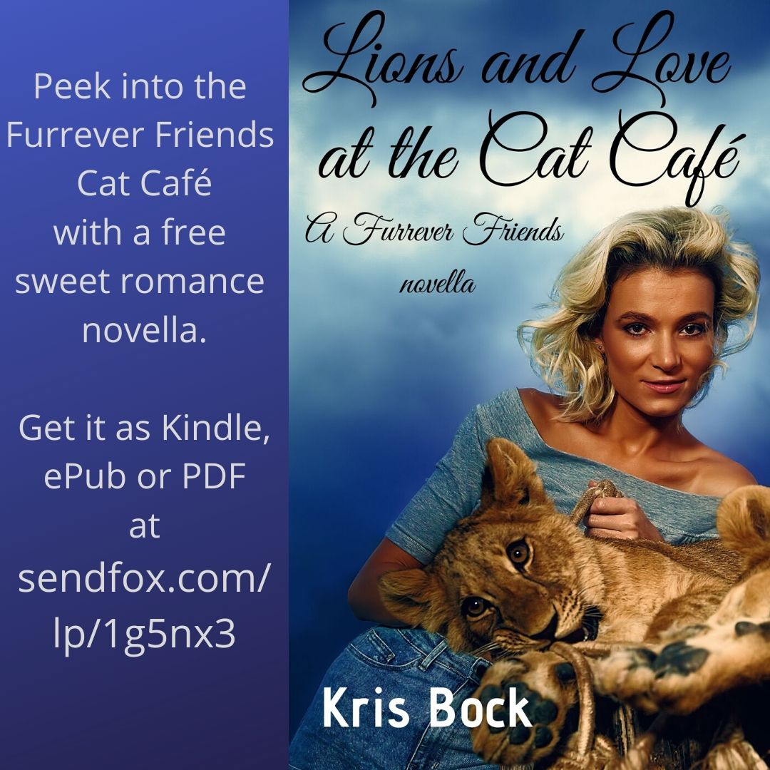 Lions and Love at the Cat Café is available in PDF, MOBI, and ePub. Get it free when you sign up for the Kris Bock email newsletter here: https://sendfox.com/lp/1g5nx3