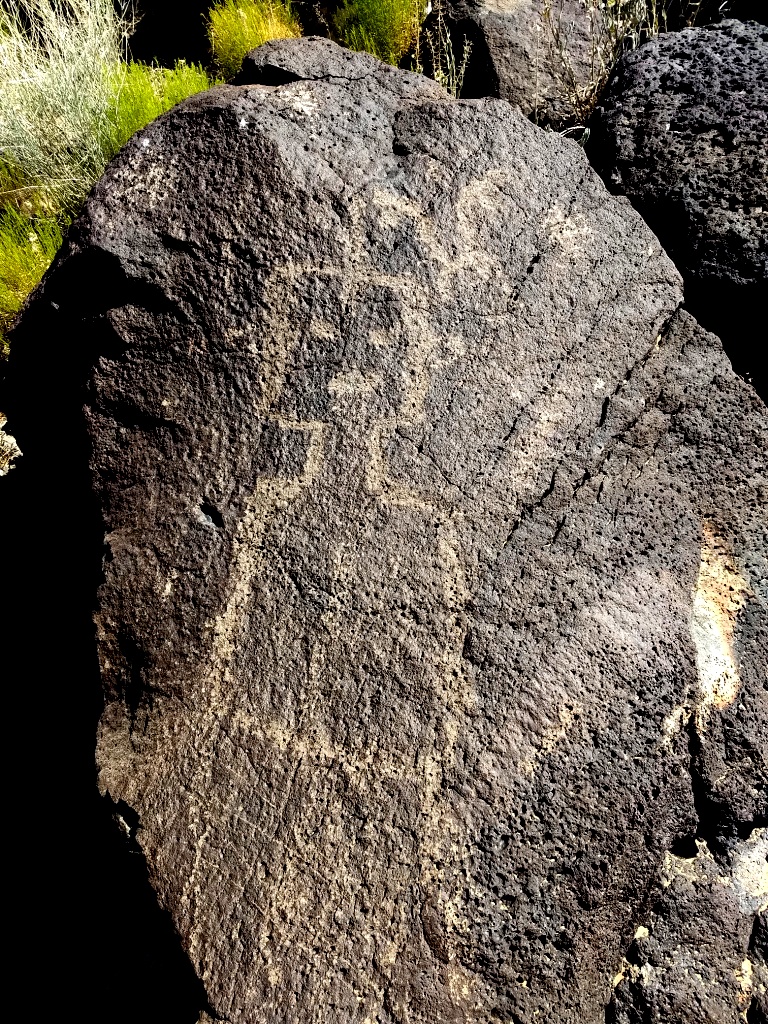 This selection is of human or humanoid shapes we saw. The petroglyphs have spiritual significance for the Pueblo people, so they are not interpreted for outsiders.