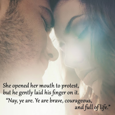 He kissed the corners of her mouth before leaning his forehead against her own. “Ye catch my blood on fire, lass.”