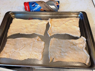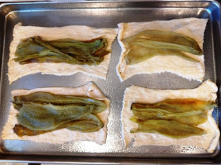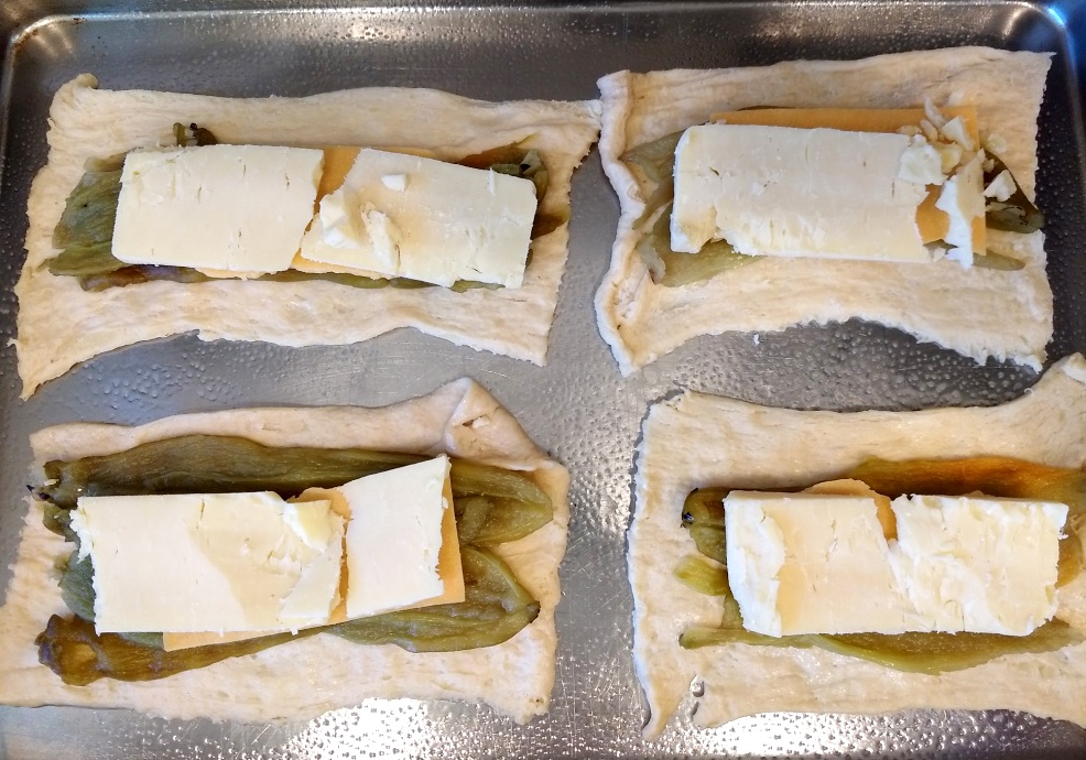 Instead of batter, it uses refrigerator crescent rolls. The chiles are laid out on the crescent squares. They can be whole, but don't need to be. I like to use a Monterey Jack string cheese plus some extra cheddar, but I have used whatever I had on hand. Then they're folded and baked. Yummy!