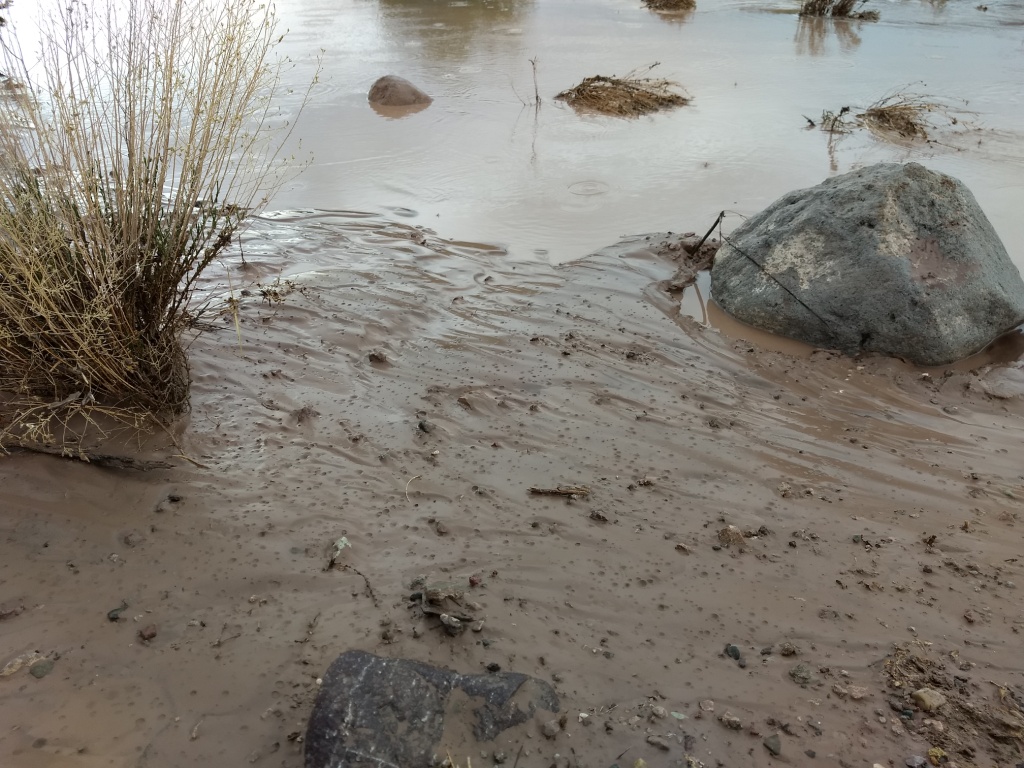 A quick post with a video and some photos from our recent flash flood in the drainage channel.