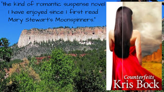 My romantic adventures should appeal to fans of “lighter” romantic suspense, along the lines of Mary Stewart, Barbara Michaels, and Nora Roberts. In fact, Roberta at Sensuous Reviews blog said, “Counterfeits is the kind of romantic suspense novel I have enjoyed since I first read Mary Stewart’s Moonspinners, and Kris Bock used all the things I love about this genre.”