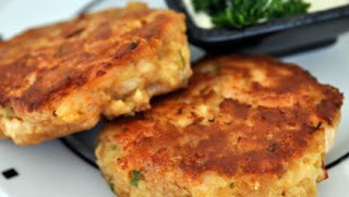 Dice vegetables small and add all ingredients together. Chill them for a least a few hours so they will hold together better. as always add to your liking you might consider onion powder or Old Bay about 1-1 1/2 Tbsp. or maybe go Cajun.