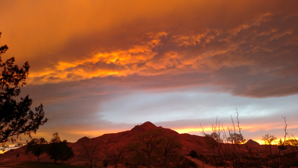 I had to share these pictures of a fantastic New Mexico sunset. These were all taken within a period of about five minutes. My phone camera tends to make things a bit too orange. The third photo, with the paint, is more accurate. Impressive regardless, aren't they!