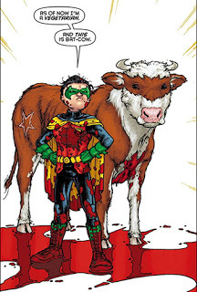 I love Grant Morrison. The Invisibles had a huge, huge impact on me. But this panel from Batman & Robin makes me ridiculously happy. It's Morrison summed up for me: meaningful, aware, and yet a little absurd in a totally meta way.