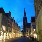 Yes. Yes. Yes. I half-shouted. If you take me to Muenster, I’ll pay your train ticket and your hotel room tomorrow night. Then I can head on over to Mainz on Friday, and you can come back here. “I do have a presentation paper to finish before next week,” she said. Write it on the train, I told her. Take me to Muenster. Please. I don’t have the nerve to travel down there by myself. And look, I have all these Euros, I said, waving them in her face. I have to spend them somewhere. Take me to Muenster. She picked up her phone and called an old hotel she knew of close to the center of old town Muenster. And minutes later, she had two rooms booked for Thursday night. We stopped by the train station later and I bought our tickets. Muenster. I was actually going. I couldn’t quite believe it. The old city with so much history, the city that harbors the darkest and most unique stain in all of Anabaptist history.