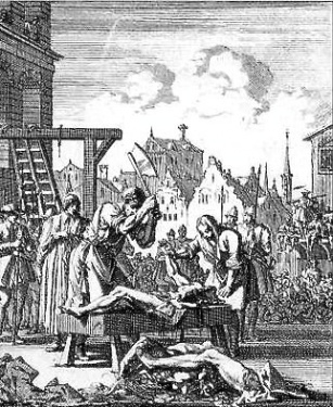 In fact, the embattled queen, no doubt frightened as well as enraged, ordered that the guilty Babington conspirators be executed in ways so horrible it would never be forgotten. And so the first ones were. But the crowd of spectators, presumably hardened to such sights, were sickened by the hellish castratings and disembowelings. When the queen heard of this, she ordered the next round of traitors be hanged until they were dead.