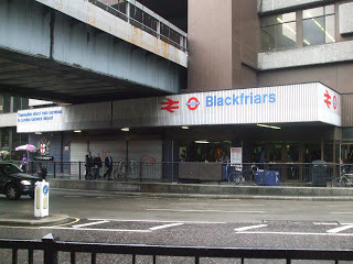I bought some historical maps and guidebooks at the fantastic bookstore at Museum of London. Armed with my research suggesting some bits and pieces of the medieval complex remained, I headed for the neighborhood early in the evening. I took the underground to--what else?--the Blackfriars station.