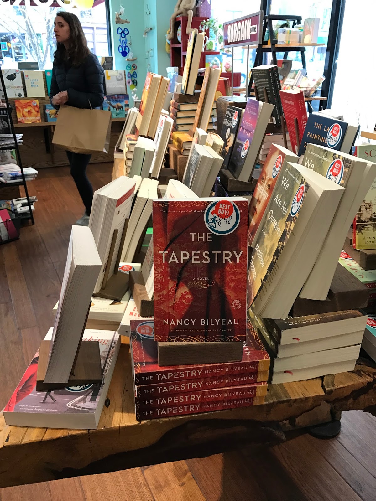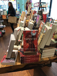 Last week, I received a wonderful email from some in a city closer to home. Melodie R. Winawer, author of the upcoming historical thriller The Scribe of Siena, spotted The Tapestry on the table of a bookstore in Saratoga, New York.