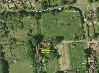 The priory wall, seen at rightOne a cloudy afternoon, I walked the perimeter of the centuries-old wall, as the cars whizzed by. There are no Dartford Priory gift shops, as exist at the carefully preserved Tower of London. No mugs for sale bearing the face of Prioress Elizabeth Cressner. But her life was significant all the same.