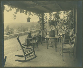 On the porch of "White Pines" at Byrdcliffe. The arts colony was founded in 1902and is still offering residencies to artists and writers.