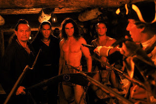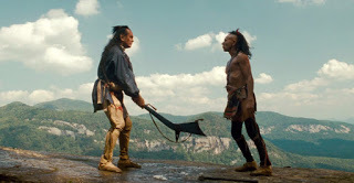 It is a bit easy to miss in such a romantic, gorgeous film, but there is a serious political theme to the film, one that resonated with me. As the story begins, the British are trying to recruit colonial settlers in New York to serve in a militia, a proposition that Hawkeye has nothing but scorn for. This puts him on a collision course with Major Heyward, a stiff officer obsessed with rank and victory who is appalled when a general tells the colonists that they'll be allowed to leave the militia should they hear their farms are being attacked by the French-led Native Americans. Once they reach Fort William Henry, the news of just such attacks--the enemy murdering helpless women and children--leads the colonialists to insist they be allowed to go to their families. But the British renege and refuse to let them go. "Those considerations are subordinate to the interests of the Crown," declares Colonel Munro. Hawkeye helps the Americans sneak away, but then he stays behind to be with Cora, who he loves, and is arrested for sedition.