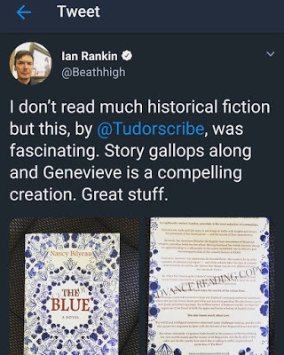 It's a big day. My novel THE BLUE has been chosen as the Bookbub offering for all the newsletter subscribers whose chosen category is Historical Fiction. Since Bookbub wants to promote novels on discount, my publisher has lowered the price of the book to .99 for the ebook in the United States and the United Kingdom.