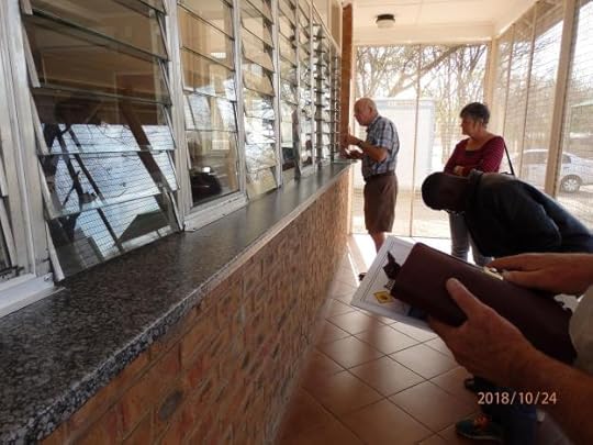 In Zimbabwe at the Sango Border Post I asked permission and they said photographs were not permitted. I managed to get one of the sign, though. After some questions and another search, we were allowed to proceed.