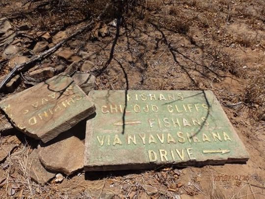 The signs were not always visible, like these that had been smashed up on all four corners, and it was extremely important to have a map. Our GPS needed town names and did not accept the names of the camps in the park, so it was mostly useless. It could show where we were, and when we came to a crossroad, but the roads were not named, and we relied mostly on the map, and measuring distances between points.
