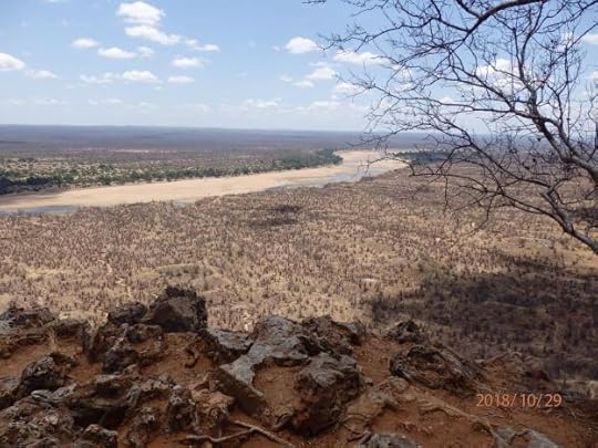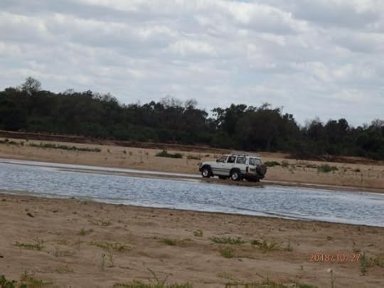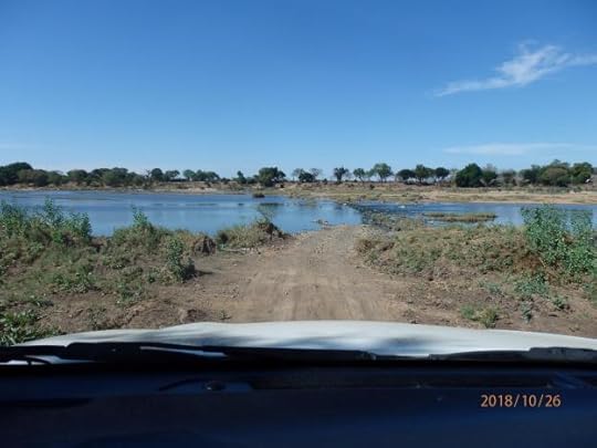 We followed the dirt road through villages and primarily along the border with Zimbabwe for 57.5 kms altogether. The Nuanetsi River crossing, (22.5 kms) was all sand.