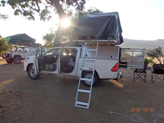 We went early to fetch our rental 4×4 vehicle from Bushlore, a Toyota Hi-Lux extended cab. It was kitted out with just about anything a person could need for overlanding in Africa, including a complete kitchen set, a fridge with its own battery that kept running when the vehicle was off, a table, chairs, multiple accessories, a tent complete with bedding, a water tank, jerry cans for extra fuel, an extended fuel tank, two spare wheels and a heavy-duty jack. There are several of these companies, but this one was recommended — https://bushlore.com/ (thanks to Viv Thome from 2BWild Safaris, http://www.2bwild.co.za/ ) They also provided most of the required paperwork for the border crossings, plus vests and red triangles and the signia on the vehicle, but we had to buy our own third party insurance for Mozambique–available at any Outdoor Warehouse store.