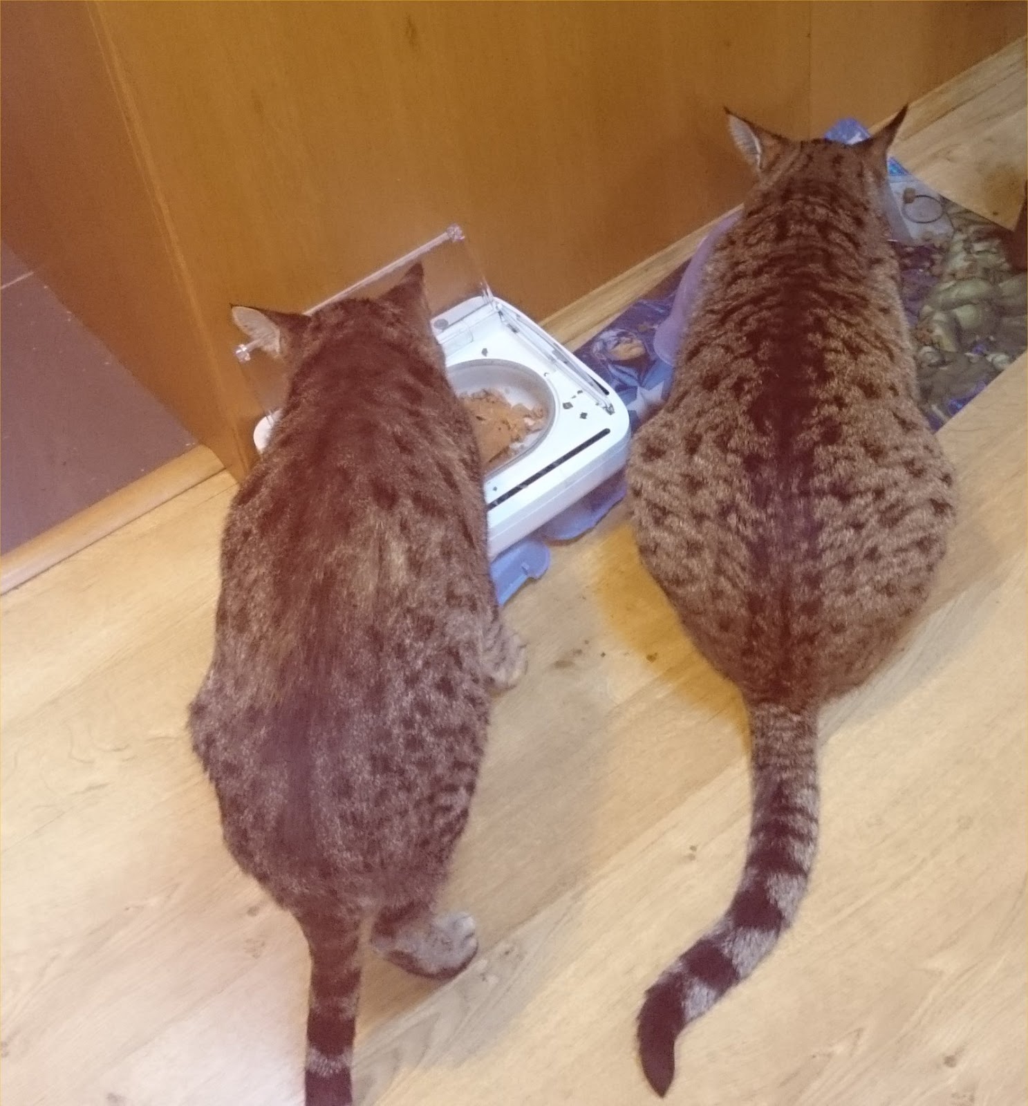 Here is our little Christmas miracle - Amber and Ruby eating quietly side by side, no hissing, no banging, just peace ;).