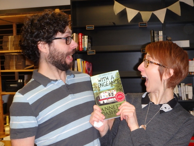 ! That's Trevor and Natalie of Mystery Lovers Bookshop hamming it up with an advanced copy of it. AND
