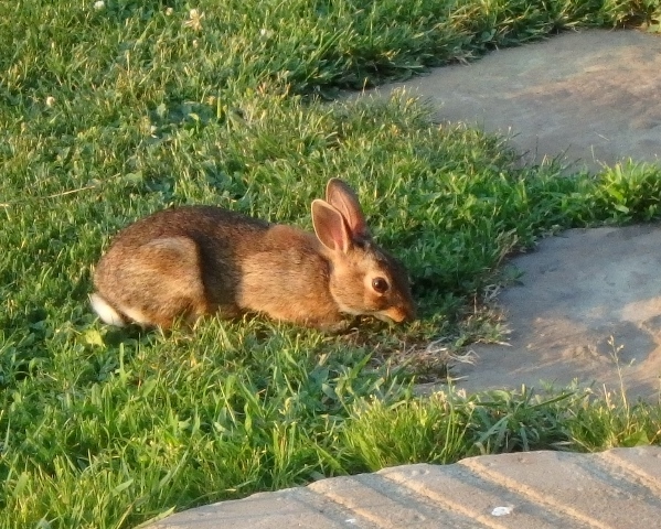 And in spite of those coyotes, we have a whole family (several generations, at the moment) of rabbits living in and around our yard. I call them the Bun family. Mr. Bun, Mrs. Bun and babies. Bigger babies (the teenagers?) and wee babies (second crop of the year).