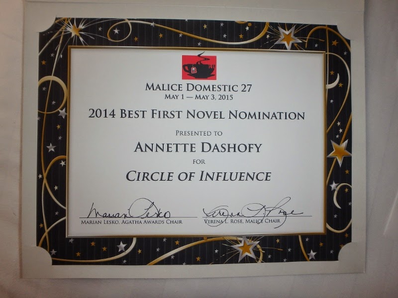 Last year, I'd received a similar call congratulating me for having my novel, Circle of Influence nominated for an Agatha for Best First. But that was last year. I knew it couldn't possibly be anything like that this time. They probably needed to confirm something with my registration.
