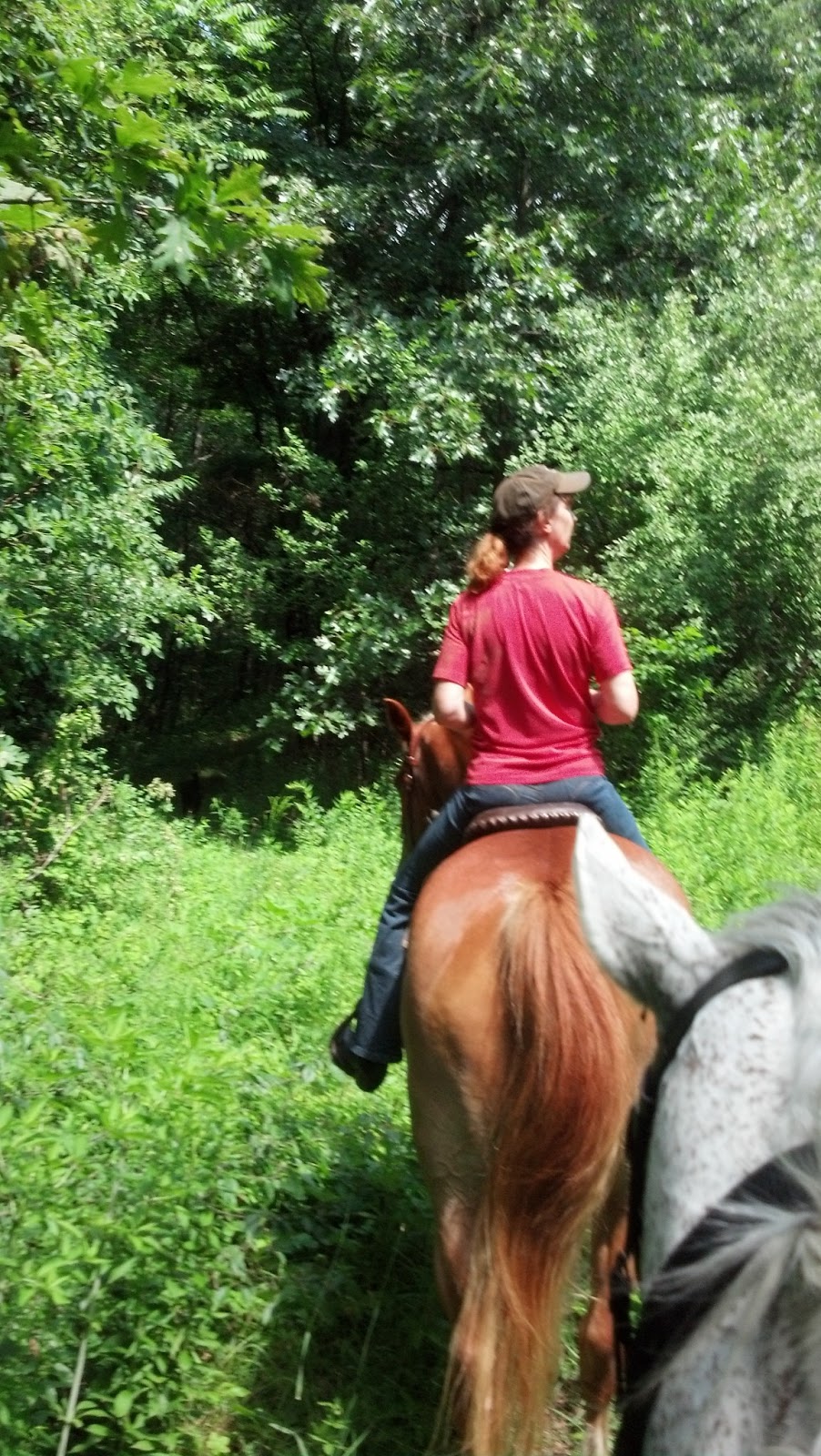 We had a great trail ride. I ate some spider webs. This may not sound like fun, but it’s been so long since I’ve been out in the woods on a horse, even a face full of web made me smile. Of course, they were empty webs.