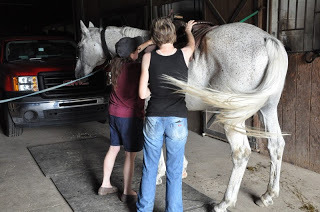Then they brought in Jonah (Yes. Jonas and Jonah. I was just going to call them both Joe) and started to saddle him for Stephanie to ride.