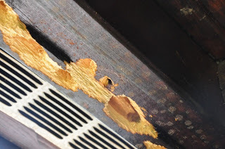 I put the whole woodpecker issue out of my mind. Until the morning after we returned home. Then I took a stroll around the house…and nearly fainted.