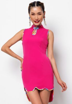 I have my eyes on this striking pink Qi Pao with scallop hem. Should I get this and be all cute this year?