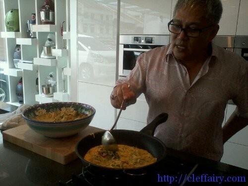 Here’s Chef Wan, preparing the ingredients for the Greek Moussaka.