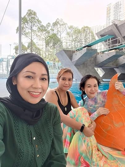 Out mermaiding with my beautiful mermaid instructor Carmen Hui and Farrah Mazlani . I was having a nasty migraine earlier of the day but once I jumped into the pool, I feel so good! Haven’t been mermaiding so much with my instructor lately, cuz we were both busy with our own stuff, so I’m really glad to see her back in action today.