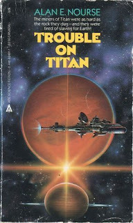 Alan E. Nourse was barely on my radar as a writer until fairly recently. I'd read one book by him, Raiders from the Rings, and liked it quite a lot. It was young adult SF, and so I picked up another YA SF book by him called Trouble on Titan. This one was even better. An exciting story and really well written. There's a fair amount of poetry in Nourse's work.