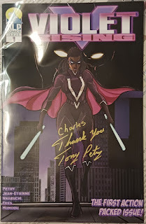 Violet Rising is the first in a new comic book series fromthe pen of Tony Petry. I’ve known Tony for a while on Facebook and we’vecarried on a voluminous correspondence. He’s been sending me an image here andthere of the comic but now I’ve got the whole first issue. And I read it.