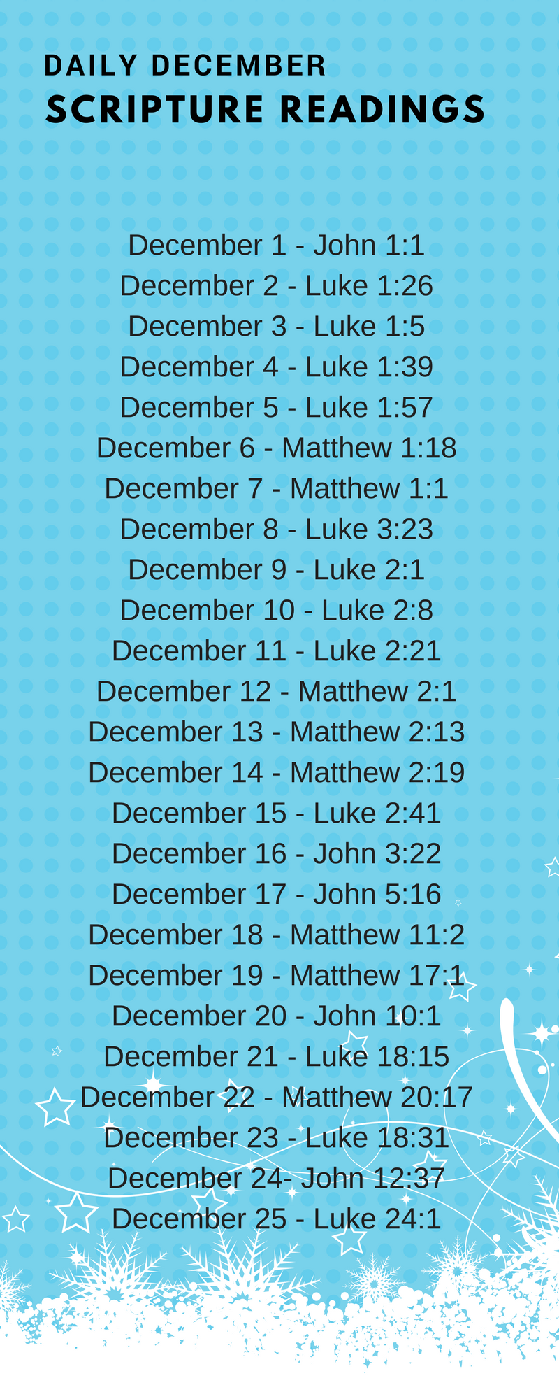 If possible, read from your hard copy instead of the phone. Intentionally slow down to ponder God-breathed words as you listen to crisp vellum-thin pages turn one by one. Click here to access Daily December Scripture Readings if structure is your friend (we’re BFF’s, by the way!) Obviously, longer reads are ideal but if given the choice to glaze over a chapter or indulge in a hand-full of verses, I’ll choose the latter any day, especially in December.