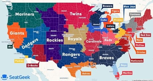 I posted the above graphic on Facebook a few days ago, but find it interesting so I’m posting it here too. It’s supposedly baseball territory, where fans for each team live. So, the Angels and White Sox have no fans? I’m unclear. How accurate is this thing? All I know is… the Reds info seems relatively correct. What are your thoughts?
