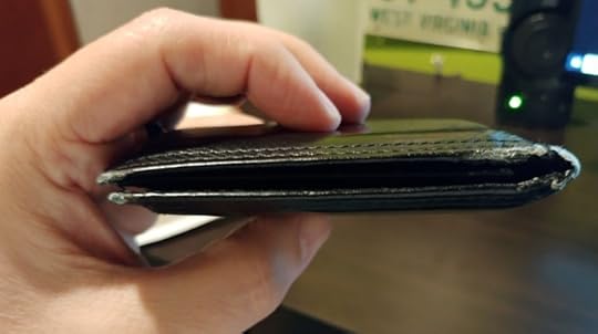 Shit. Now that I look at it again, I see that my wallet is not very thick at all. What do you think? Oh well. I’m still considering going back to carrying my money and the few cards I use in my left front pocket and seeing if the trouser-shredding slows down a bit. At this point, I’m about to start looking for a monthly enormous pants subscription service.