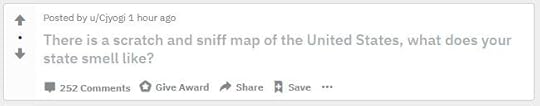 If you can’t see it for some reason, it reads: There is a scratch and sniff map of the United States, what does your state smell like? The punctuation is questionable, but that’s beside the point. I think it’s a solid and creative question. And instead of just lifting it and acting like I was the originator, I’m stealing it with full disclosure. What do you have on this one, my friends? What do you believe your state would smell like on… a scratch and sniff map? Tell us about it in the comments, won’t you?