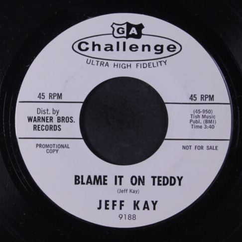 But I’m reasonably happy with it. It feels like the first name should’ve had two syllables since the last name only has one. That would be my main complaint. Jeff Kay is very choppy. It also sounds like JFK, who was president when I was born. Weird? It was almost certainly a coincidence… My mom and dad would never go in for such cuteness. I’m sure it never crossed their minds. I should ask them about it. Indeed, here’s a 45 from the Kennedy years, some political novelty song. Check out the artist’s name. You know… ’cause it sounds like JFK.