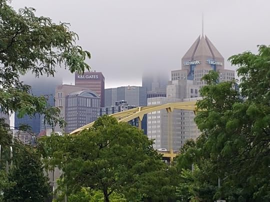 I don’t have many pictures from the Pittsburgh portion of the week, ’cause the Raconteurs did not allow phones. They made you put them in one of these Yondr pouches, so you didn’t have access to them during the show. But I snapped this one while waiting to get into the venue. It was rainy and foggy and it felt like the temperature was plunging. Since it was an outdoor concert, I didn’t care for any of that nonsense. Except for the temperature plunging. I was cool with that.