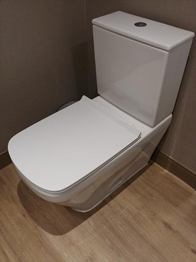 I did about five solid minutes on this squared-off toilet in our hotel room. I wanted to know how I was supposed to attack it: facing forward, side-saddle, or corner-to-corner. Toney did not seem to share my amazement.