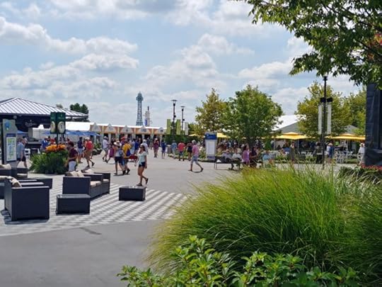 There were many, many vendors and shopping “opportunities” there. Including such offerings as a vodka tent, a stand where you could buy glasses of champagne ($19), and a place where you could purchase “cheeses of Europe.” Oh yeah, and high-end jewelry, too. At a tennis tournament? Hey, whatever. We enjoyed some local delicacies: Graeter’s ice cream, LaRosa’s pizza, and a pint of Rhinegeist beer. You can see the Eiffel Tower at Kings Island amusement park in the background.