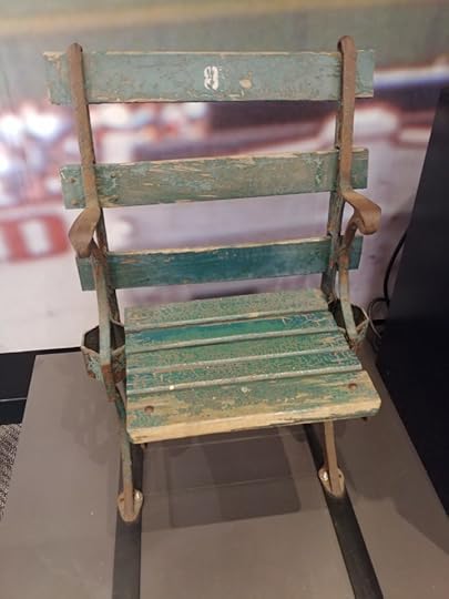 This is a stadium seat from the old Palace of the Fans, where the Reds played from 1902 to 1911. Look at the size of that thing! I’d snap both armrests off, or get my ass wedged in there for good. But I love stuff like this. People sat in that seat to watch baseball… in 1911. When Ty Cobb was 25 years old. Crazy!