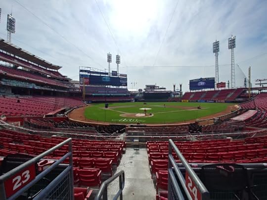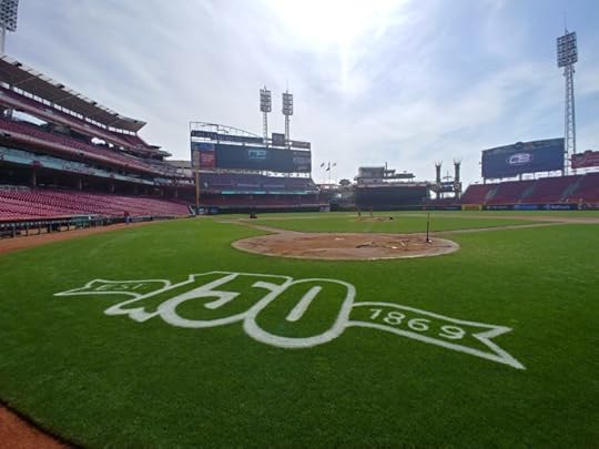 Great American Ball Park at 10:30 am. We were told workers have been there all night cleaning up the garbage that was left on the previous night. At this point, they have hoses out and are spraying things down. The groundskeepers are also hard at work. It was amazing to see how much was going on there, so early in the day. You can’t really tell by the photo, but the whole stadium was a beehive of activity.