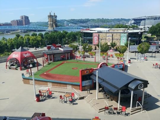 How great is this? A Wiffle Ball field for the kiddies. I love it. Also, the location of home plate from the old Riverfront Stadium is “near the hostess station” inside that bar in the background, the one with the big IPA banner. It’s hard to imagine. I visited Riverfront many, many times.