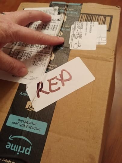 Here are a couple of pictures of the box I took. As you can see, the Amazon tape on the bottom had been slit open and somebody re-taped it. Also, there’s a sticker on the top that seems to have REP written on it. I don’t know what that means.