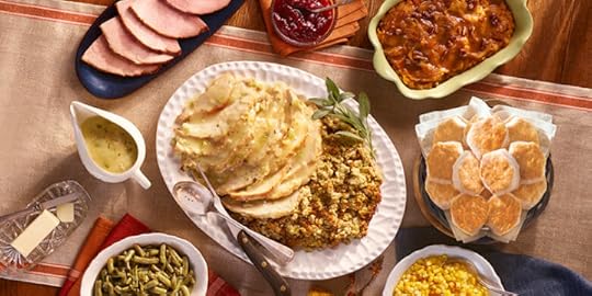 Also online, I was reading about the various offerings for pre-cooked and ready-for-pickup Thanksgiving dinners at Cracker Barrel. They have one that is extremely tempting. It feeds six and features all the must-haves: turkey, ham, cornbread dressing, turkey gravy, cranberry relish, choice of three additional sides, choice of bread. Feeds six, for $68. I mean… that sounds almost too good to be true. No ripping apart the kitchen… no arguing… everything’s super-good…