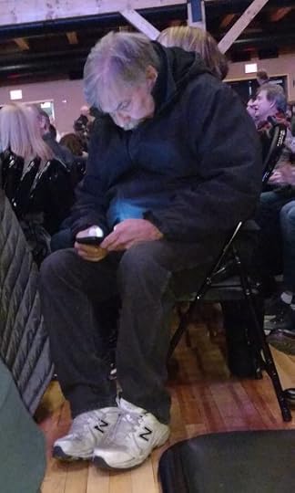 By the way… the man in the picture was sitting across the aisle from me. I snapped it moments before the show started. Yes, it was a youthful, raucous crowd. Very reminiscent of the time I saw Fugazi in Atlanta. My son and I were lucky to make it out of there alive on Saturday night.