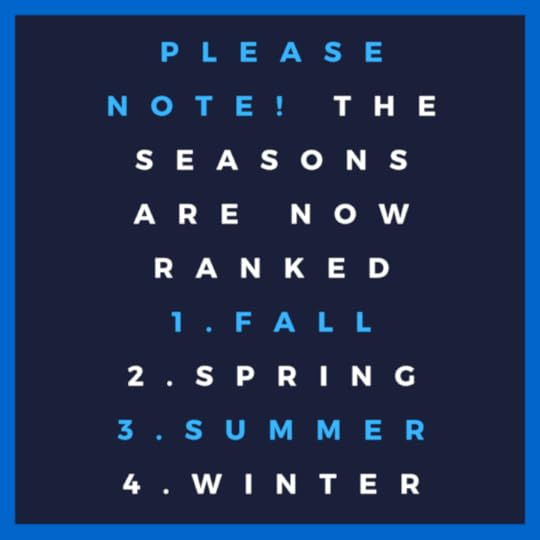 Have your seasonal rankings ever changed? I can see it maybe being adjusted after moving to a different area o’ the country or world. But mine was a little different. What are your thoughts on this important matter? How do you rank ’em? Bring us up to date on it.