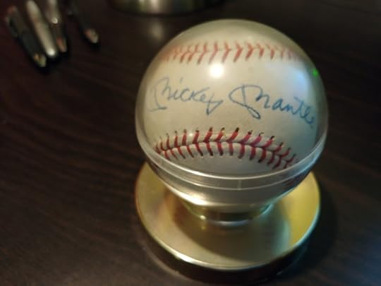 I procured this Mickey Mantle autograph in-person when I was 12 or 13 years old. The retired baseball legend was scheduled to do an appearance at The Diamond, a great old now-defunct department store in Charleston. Super-exciting! So, Steve, my brother and I took a bus up there and joined the sizable crowd with some items we were hoping to have signed. But… tragedy struck. A woman eventually appeared and told everyone that “Mickey is delayed” and would not be arriving for several hours. Please come back later, she urged. Everybody groaned and grumbled and the place cleared out faster than a post-Starbucks rectum. And it didn’t feel like too many of ’em would be coming back.